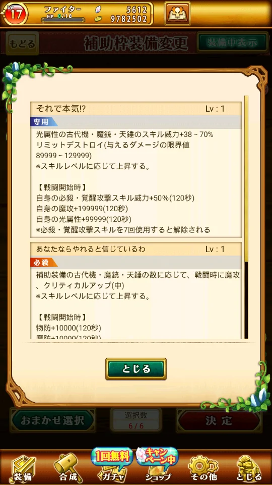 帳號內還有很多其他究極裝備可以放輔助欄