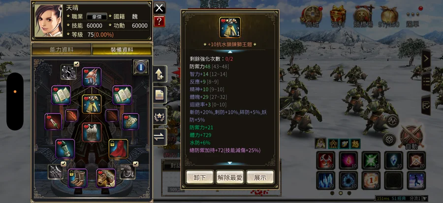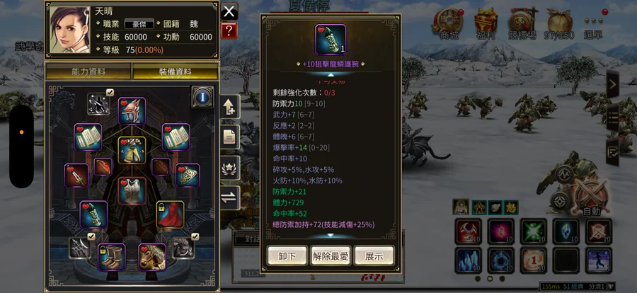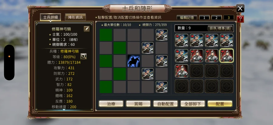 兵種:修羅虎豹5,虎豹5,5張修羅虎豹令,4隻80等修羅神弓