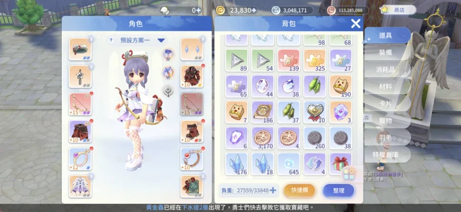 【資源】銅幣1.13億、Zeny幣300萬、23830金幣、價值約10000金幣的精煉資源—含祝福石、神晶、鋁,未來都可以再慢慢提升一些東西。