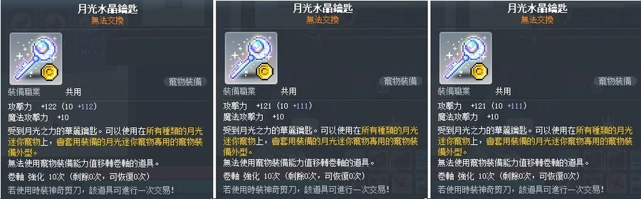 122攻 + 121攻 + 121攻 3把物攻 月光水晶鑰匙18000,可直接下單