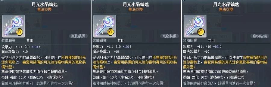 114攻 + 111攻 + 111攻 3把物攻 月光水晶鑰匙11000,可直接下單