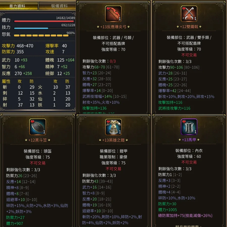 表功465,血量14389,總防禦加持75