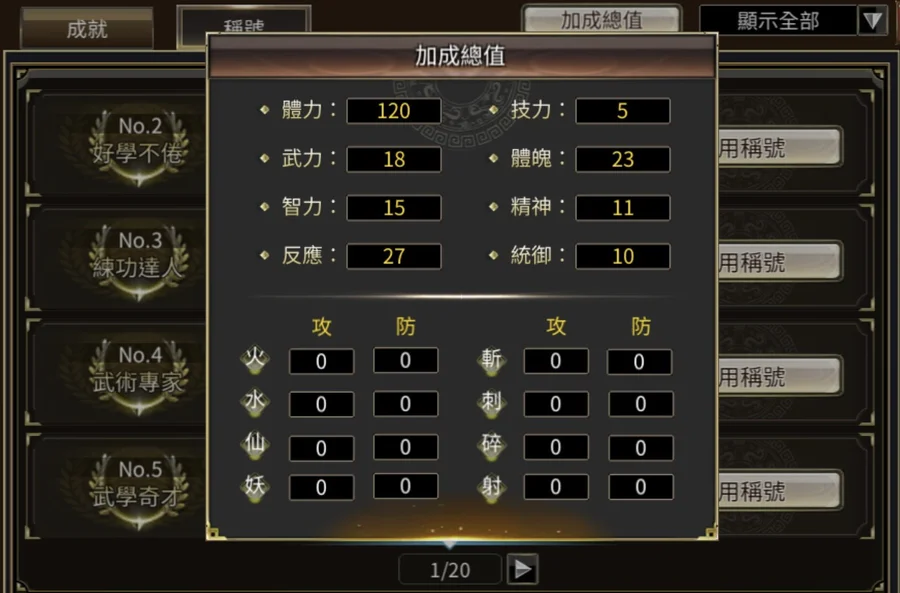 成就集結 : 120血.18武.27反.23體