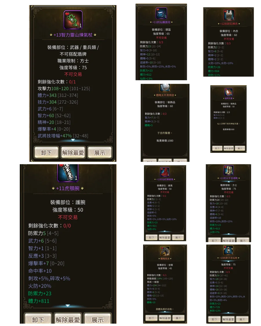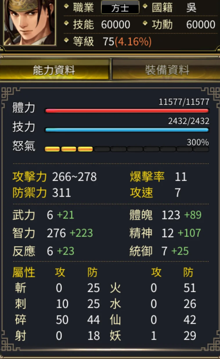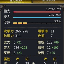 裝備+11頭13%仙.+12內衣12%碎.+10衣13%射.+11鞋7%火.+11披風9%仙