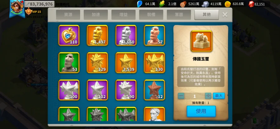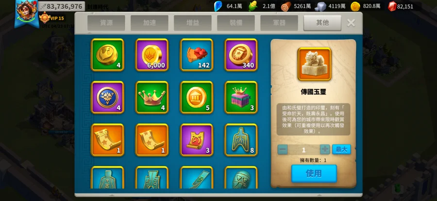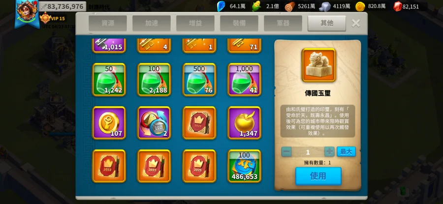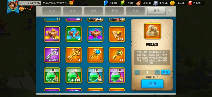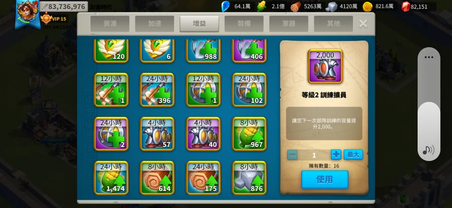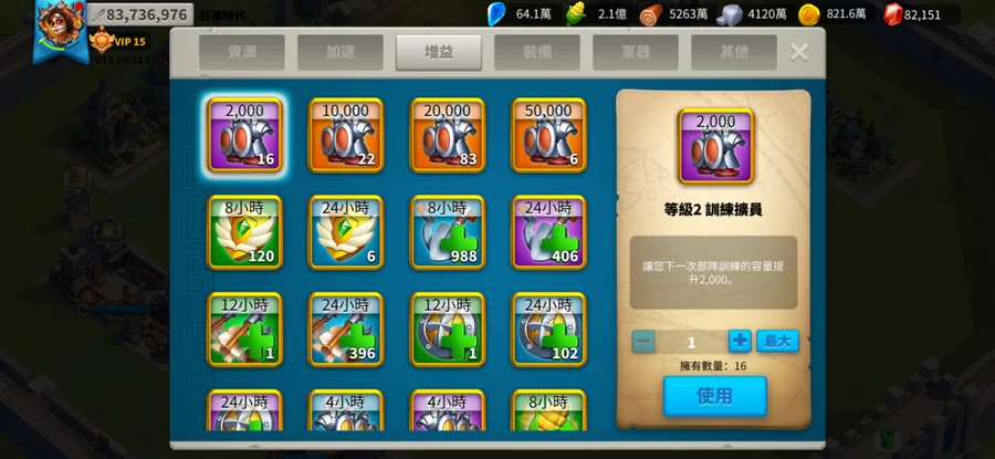 加速13XX天 兵夠多~目前你不需要再使用加速 可以慢慢存