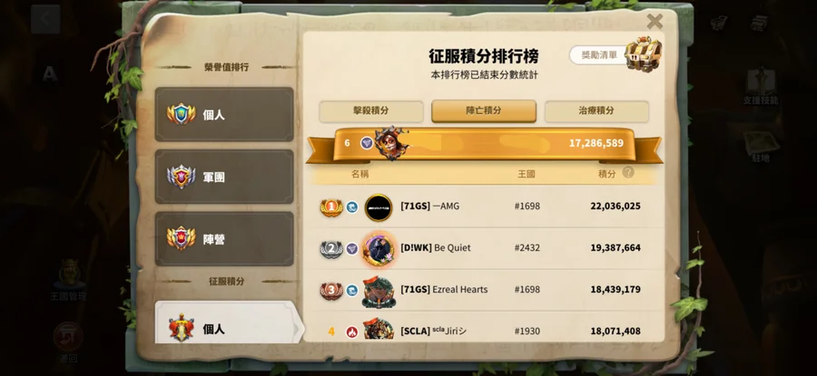 本次KVK剩下8天已贏下 陣亡排名第6可拿到一張征服者之證