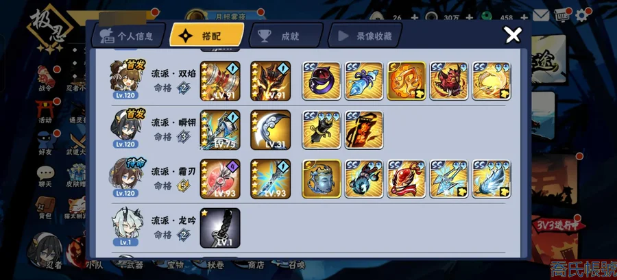 【OBROLEY107442】忍階:極忍|忍者:夜叉·隼白,霜刃·伊鶴,鬼斬·紫原,龍吟·洛青|五命忍者:五命霜刃·伊鶴|二命忍者:二命龍吟·洛青|一命忍者:一命夜叉·隼白|武器:叢雲之霜羽,巨闕·縛日,百鍊,破霧·貫羽,斷潮|區服:海之國 詳情看圖【官服賬號】【自主截圖】