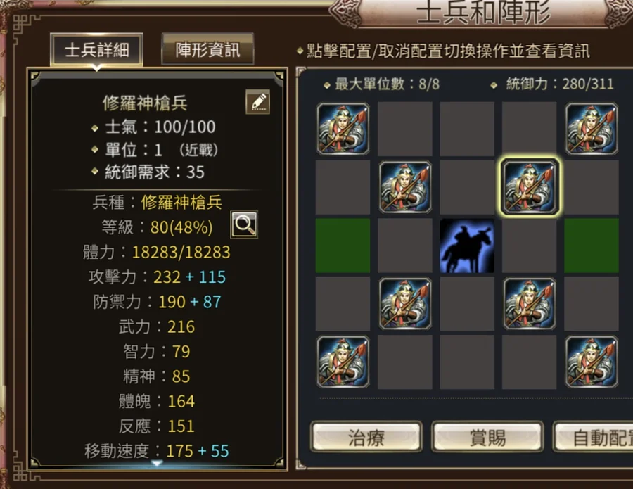 經典75等強命軍 附8隻80等修羅槍兵 技能 強命 近戰 破城 銀元寶1萬