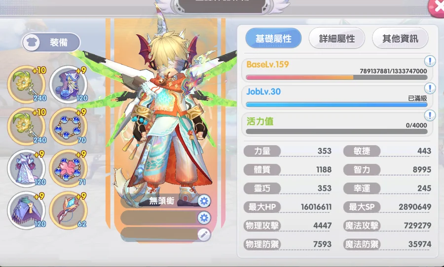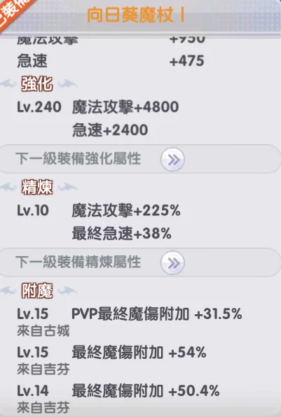 強化10 附魔9 精煉4 寵物覺醒4 武器覺醒1