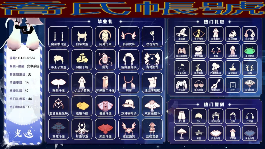 【OBGAISU956642】蠟燭736,愛心922,光翼240,畢業季:魔法季,潛海季,追憶季,表演季,預言季,破曉季,夢想季,風行季,王子季,遷徙季,集結季,聖島季,彩染季;畢業禮:魔法季耳墜,白梟髮型,阿努比斯,多羽髮飾,玫瑰背飾,小王子髮型,阿拉丁帽,鯤燈,留辮蘑菇頭,青鳥面飾,鰩鯤斗篷,小王子套裝,肩帶,遷徙季短靴,藍色星星光環,連帽斗篷,雙耳鍋帽子,冥龍斗篷,彩染畢業,鳳凰斗篷,遷徙面具,遷徙套裝,燕尾斗篷,暗紅斗篷,藍黃羽袖,高領舞服,畢業手碟,手拍大鼓,單邊小辮,小號,鳳凰面具,黃眉企鵝面具,隊長面具,頰紋三角面具,潛水面具,裂紋面具,熒光長髮;禮包:巫師帽,王子圍巾,暗彩裝扮,悅動跑鞋,彩虹耳機,奧利奧髮飾,雪人暖靴,鹿角,闊腿牛仔,星球夾克,玉兔頭飾,狐狸揹包,古典音樂桌,花憩茶桌,枯角,雙馬尾,愛心墨鏡,音韻吉他,鞦韆,獻瑞摺扇,金鱗耳墜,新年紅傘,連衣裙,四葉草,彩虹耳釘,橘子髮飾,星月頭冠,雪花頭飾,愛麗絲套裝,必勝客披薩,錦標賽桂冠,祥雲服飾,小黃鴨髮飾,海洋髮型,蝴蝶與花髮飾,日光水母套裝,必勝客裝扮,皮皮貓,歐若拉之聲,多彩絨帽,小憩茶桌,電吉他,優雅領巾,荷葉傘,粽子髮飾,貝殼,心相印發飾,影院套餐,水晶球,週年慶抱枕,致愛裝扮,蹺蹺板,仙境茶會門,溫暖絨帽,船,水母塔肩飾,披肩外袍,野外餐桌,鯉躍龍門,園丁裝扮,朋克髮型,遠行髮型,夏日陽傘,雛鳥之琴,女巫裙,篝火點心,驚喜手杖,燈籠,寶藏獵人,遠行服飾,冥龍南瓜,自然之聲,球賽套裝,暖冬絨絨,雪人頭飾,網易雲耳機,藍色守護帽,綠絨絨卷耳髮飾,綴黃畫筆髮箍,幸運亨通眼鏡,騏驥迎福,琅駿啟歲長裙,寶駿丹心馬尾,鎏金魔法帽,向日葵耳飾,海靈套裝;熱門復刻:武士褲,正太,花環長髮,虛榮,紅耳機,雨傘,箬笠,白金斗篷,背帶褲,黑金斗篷,黃鼠狼面具,搓澡巾,紅金斗篷,高音鋼琴,平頂帽;【郵箱登入】【安卓系統】【官服】【無防沉迷】【官方截圖】13徽章120禮音韻耳墜狗梟 新季節已經買季卡 13個徽章 都可以送,禮包多