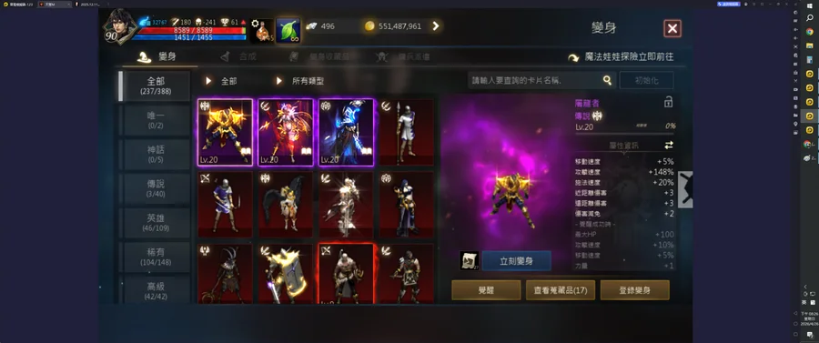 黑妖88級分身1紫技7紅技 100萬綠幣