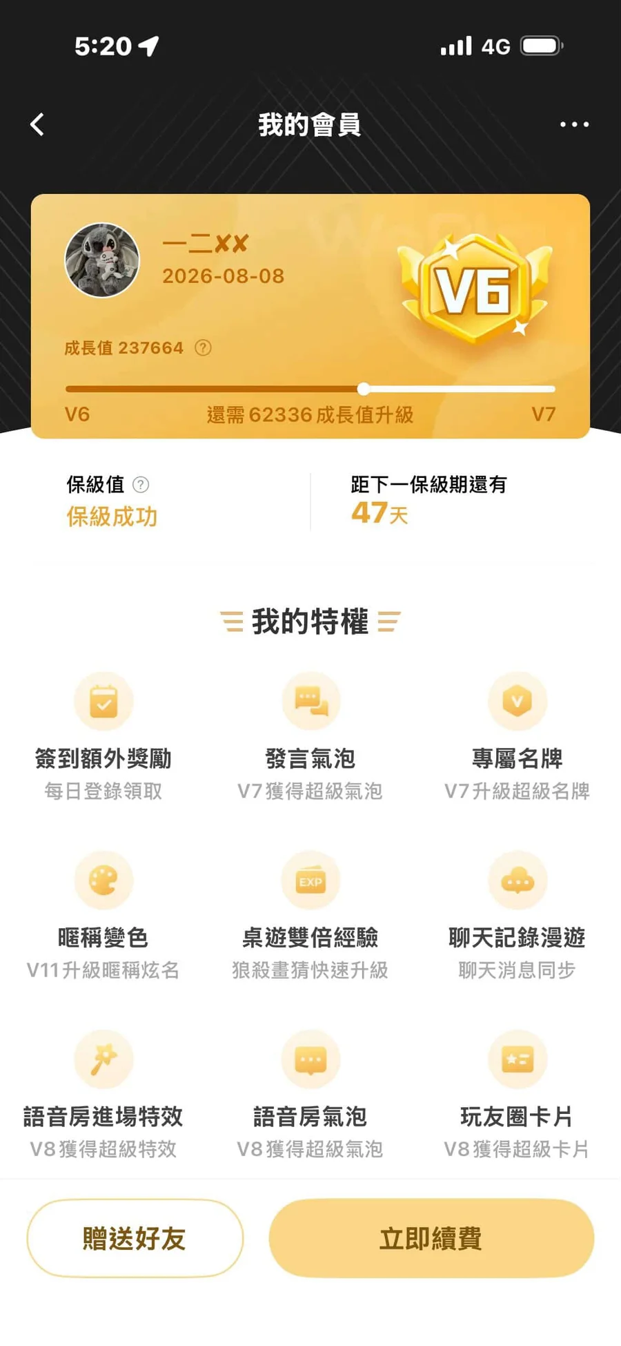 燙金vip6 成長值過半 性別女