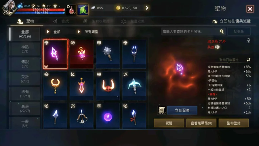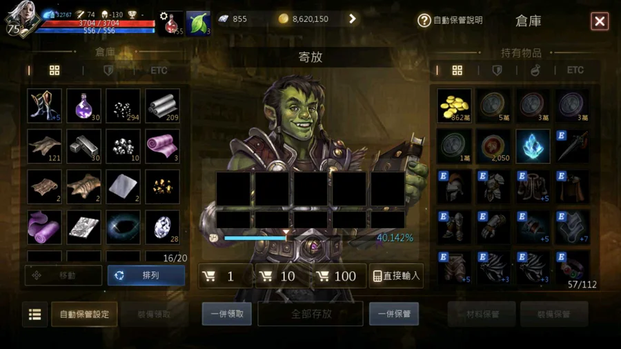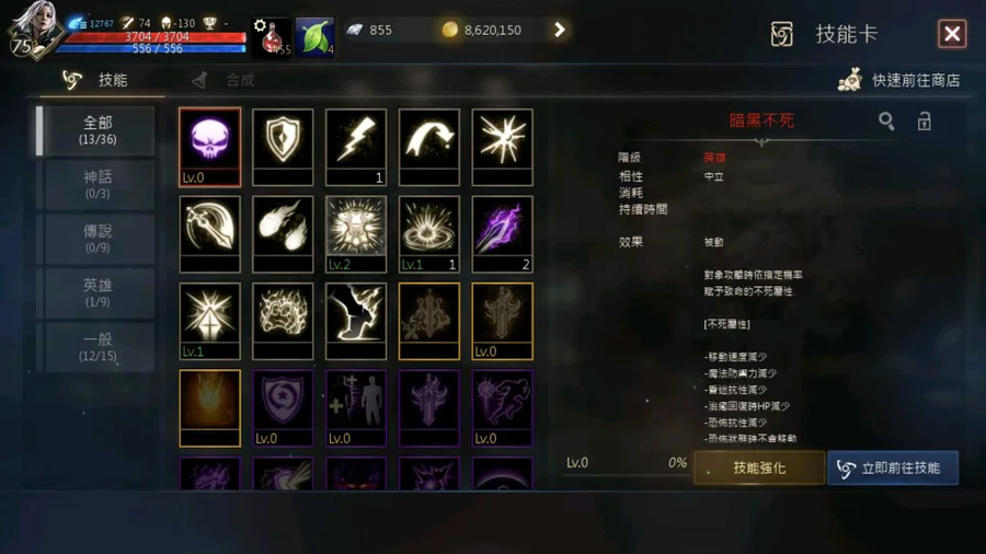 角色:暗黑騎士,75級