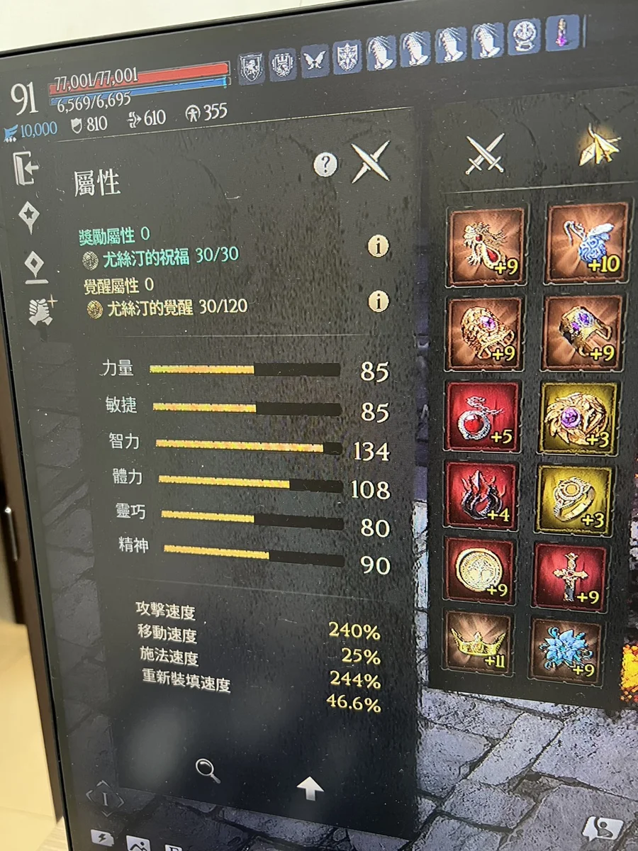 身上還有+6伊弗尼手套綁定.+9大槌一階武器綁定