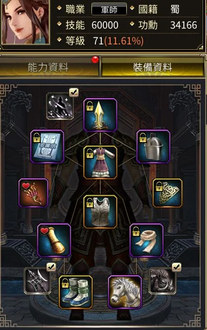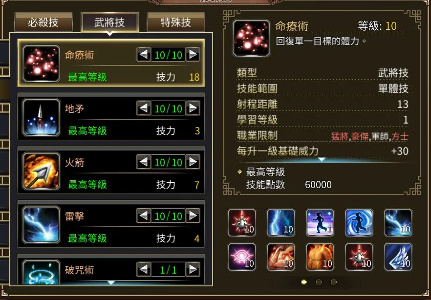 技能:鐵腕.鋼體.心眼.破城.任務技能,無其他特殊技能