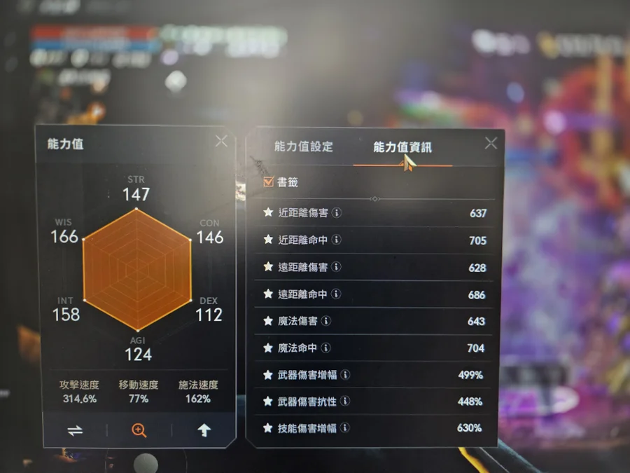 傷害637(近)-657(法)/命中705(近)714(法)/技傷625/衝抗325 (穿墮落全套其他不說看圖)
